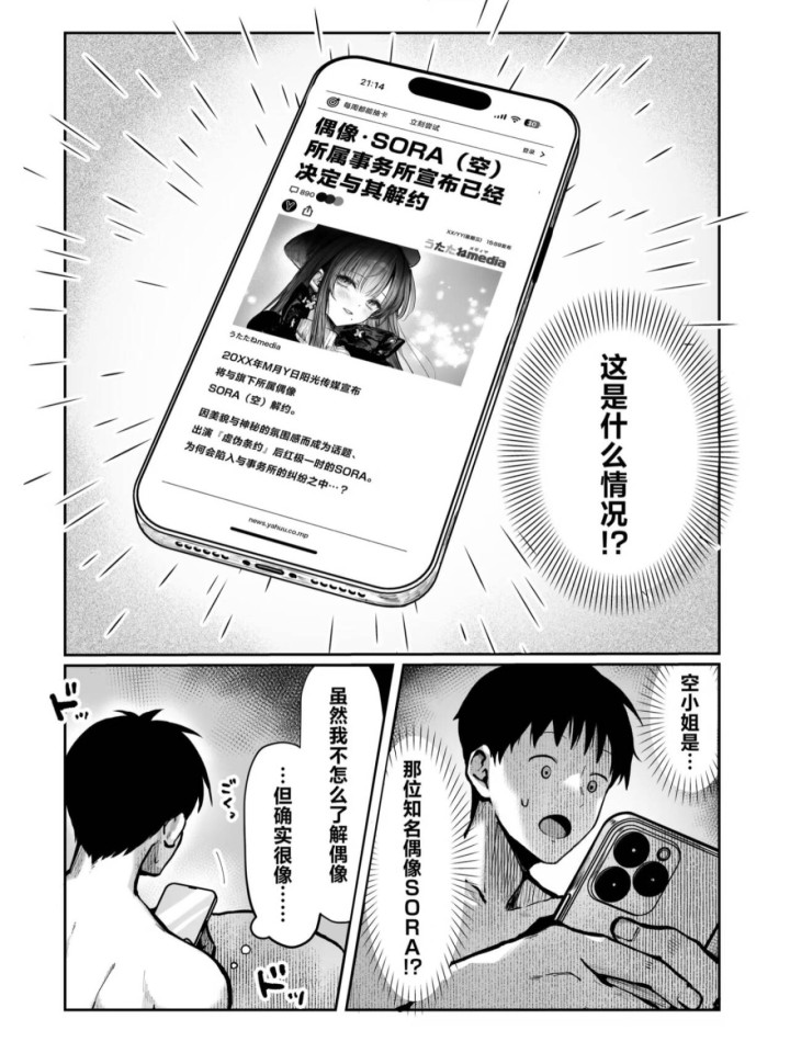 漫画主要讲述了男主是一位为了学费在便利店勤工俭学的落榜美术生,偶然间遇到了神秘的女顾客也就是女主空。照顾了醉酒的她一晚后,本以为不会再遇见。没想到再次相遇以后,空竟然提出要当他的家庭教师。 在学习和休息之后落榜生见到了她那不为人所知的一面,这是什么情况!?空小姐居然是...那位知名偶像SORA!?